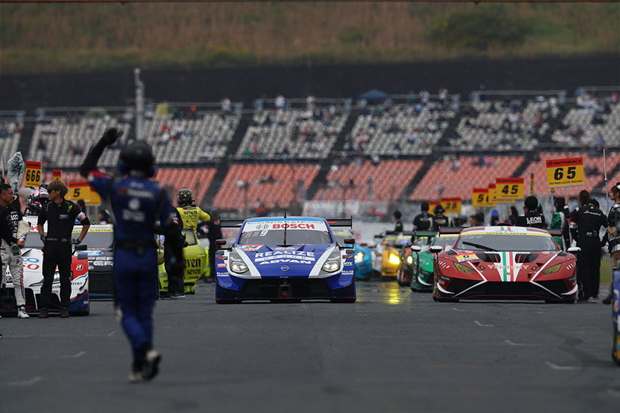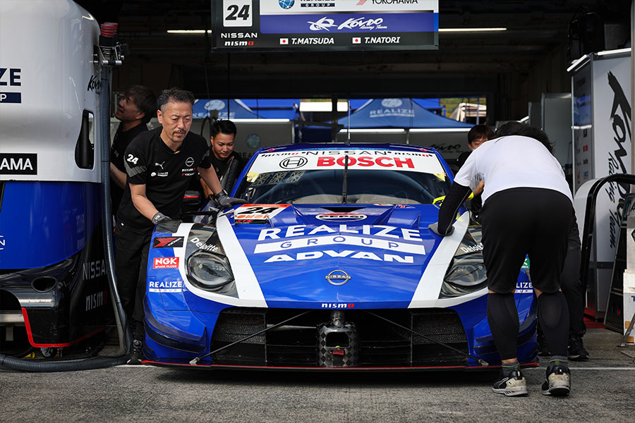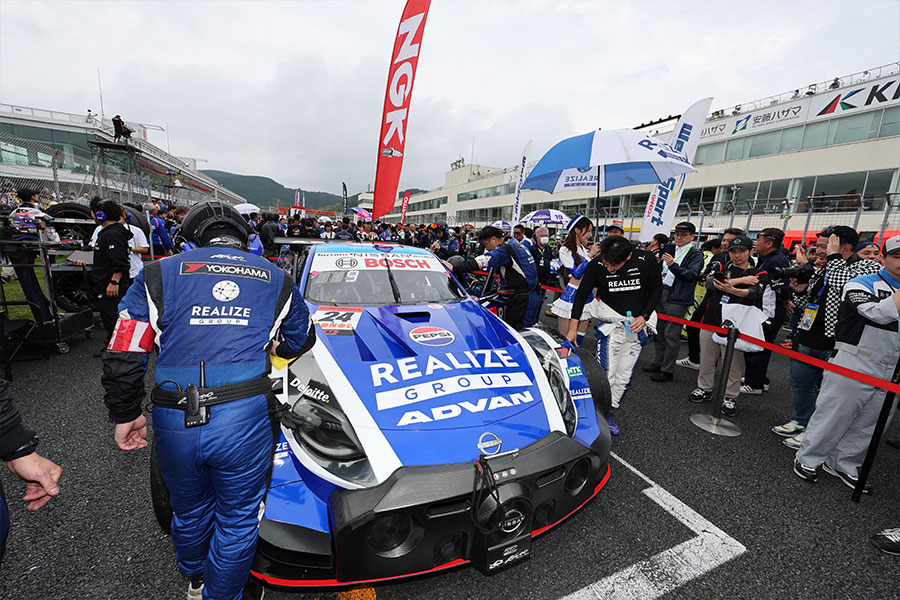 前日の予選では、Q2を前に突如本降りの雨となったことで9番手に甘んじたNo.24 リアライズコーポレーションADVAN Z。だが、ドライコンディションでの感触は良く、秋晴れの下での戦いに期待を寄せていた。
