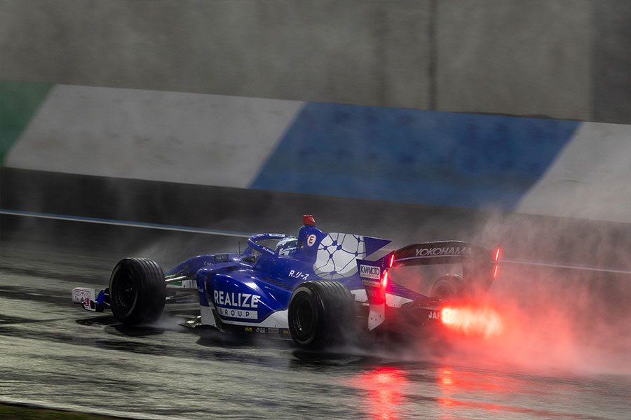 決勝レースのスタートが近づくにつれ、空模様は徐々に崩れていき、昼にはぽつぽつと雨粒が落ちてくるようになる。スタート進行中も雨は降り続け、ヘビーウエットコンディションとなったことから決勝レースはセーフティカー(SC)先導のもとでスタート。しかし、さらに雨脚が強まり視界も悪くなってきたことから、わずか3周で赤旗が提示されレースは中断することに。約1時間の中断を経て、雨脚が弱まったことからレース再開。15周目を終えるところでSCが隊列を離れ、いよいよリスタートが切られる。雨脚が弱まったとはいえ、2番手以降は前方車両が巻き上げる水しぶきで視界が完全にさえぎられる状況のなか、各車が1コーナーへと飛び込んでいった。21番グリッドからスタートし、SCラン中に前方の1台がコースアウトから後方へ下がったことで1つポジションを上げていた笹原選手は、5コーナーで並んでいた他車と接触。マシンにダメージを負ってしまい、スロー走行でピットに戻ると、そのままレースを終えることになった。相手の車両はコーナー付近でストップしてしまったため、車両回収のために再びSCランとなった。コース上の車両はSC導入の知らせを聞いてすぐさま減速していくが、レース序盤から無線トラブルに見舞われていたブラウニング選手はチームからの声が届かず、減速が間に合わずに他車と接触してしまった。ブラウニング選手はスピン状態からなんとか立て直して隊列に戻り、レースは続行。20周目に入るところで2度目のリスタートが切られたが、さらにコースを飛び出す車両が出たため3度目のSC導入となり、そのままレースの最大延長時間も経過し、23周終了時点でチェッカーが振られることに。ブラウニング選手は14番手でチェッカーを受けたものの、SC中の接触とスピンに対して競技結果に30秒を加算するペナルティを受け、正式結果は20位となった。ドライコンディションのフリープラクティスや予選で見せたポテンシャルを、ウェットコンディションの決勝では発揮することができなかったシーズン初戦。しかし、1大会2レース制の今大会はすぐに挽回のチャンスが待っている。幸い天候は回復するとの予報が出ており、KONDO RACINGの2台は翌日の挽回を誓った。